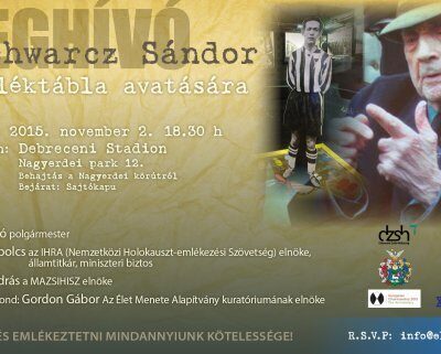 Minden emlékezőt tisztelettel várunk a Schwarcz Sándor emléktábla avatására, 2015. november 2. (hétfőn), 18:30 órakor, a Debreceni Stadionba. Pontos cím: Nagyerdei park 12. Behajtás a Nagyerdei körútról a sajtókapun.