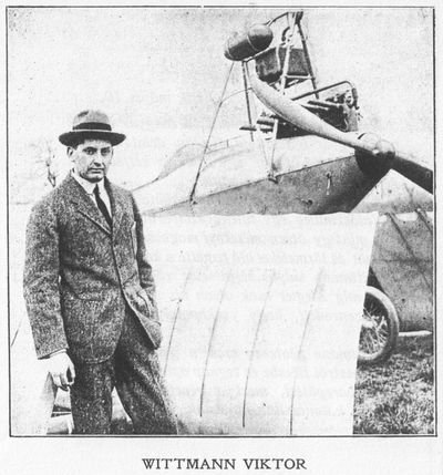 Egyszerre csak eszembe jutott egy régi „ismerősöm” akiről sok mindent olvastam. Wittmann Viktor volt ő, egy jeles, hajdani repülős, az úttörők közül való. Életéről keveset tudunk, jóformán csak annyit, amennyit halálakor a nekrológok közöltek: 1889. július 23.-án született Szolnokon, ahol utca őrzi az emlékét. Budapesten is utcát neveztek el róla. Tanulmányait a Budapesti Műszaki Egyetemen végezte, 1910-ben kapott diplomát. Már egyetemi évei alatt foglalkozott a repüléssel. Érdeklődését Bánki Donát keltette fel a levegő meghódítása iránt. A Rákos-mezőn az első úttörők között ott találjuk Wittmannt is. 1910-ben Reimsbe járt, itt volt az európai repülés központja akkor, és itt szakmai ismereteit bővítette. 1910-ben az Osztrák-Magyar Monarchia hadügyminisztériuma első ízben írt ki versenypályázatot, mely nyomán, 1911 tavaszán úgy döntöttek, hogy az „Etrich Taube” típust rendszeresítik a repülőalakulatoknál.