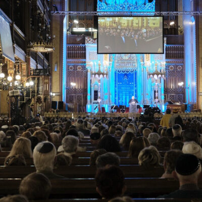 A holokauszt 80. évfordulója alkalmából Az emlékezet évének elnevezett rendezvénysorozat nyitóestjét tartották tegnap a Dohány utcai zsinagógában. Olyan sokan voltak kíváncsiak a komolyzenei koncerttel ötvözött megemlékezésre, hogy a zsinagóga földszintje teljesen megtelt, így az első emeleti karzatot is meg kellett nyitni. A közönséget Bíró Eszter, a Mazsihisz művészeti vezetője, az est programjának összeállítója köszöntötte, aki vázolta, hogy milyen események várhatók az emlékezet évében, majd dr. Grósz Andor, a Mazsihisz elnöke mondott beszédet.