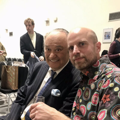 Gerendás Péter az árverésre bocsátott kabátban. Fotó: Mazsihisz