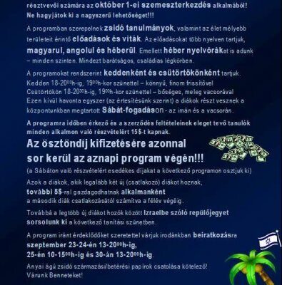 Továbbá a legtöbb új diákot hozók között Izraelbe szóló repülőjegyet sorsolunk ki a következő tanítási szünetben.