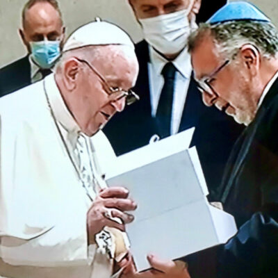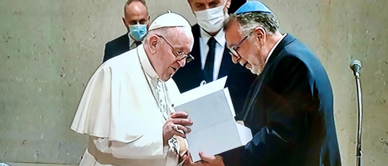 Heisler András, a Mazsihisz elnöke adta át Ferenc pápának.
