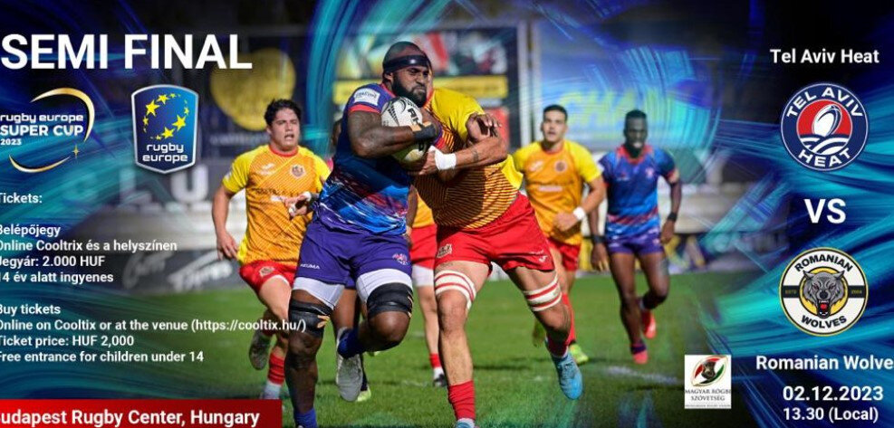A Rugby Europe Super Cup (Rugby Európai Szuper Kupa) elődöntősei közül az izraeli Tel Aviv Heat Rugby és a román Romanian Wolves játékosai csapnak össze egymással ezen a héten szombaton délután a Budapest Rugby Központban (cím: 1101 Budapest, Kincsem Park, Albertirsai út 2-4. szám).