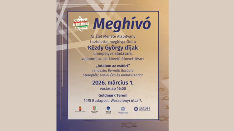 Hírek, aktuális Élet Menete: Meghívó Kézdy György-díjátadóra és filmvetítésre a Goldmark Teremben 2026. február 17. - 08:25