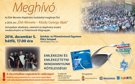 Mazsihisz hírek Meghívó az Élet Menete Alapítvány Kézdy György-díjak átadására 2016. november 27. - 15:57