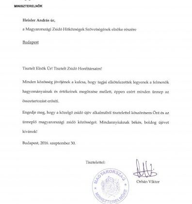Mazsihisz hírek Orbán Viktor üzenete a magyarországi zsidó közösségnek, a zsidó újév alkalmából 2016. szeptember 30. - 15:13