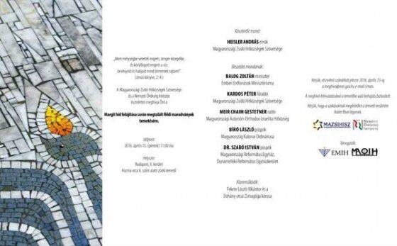 Mazsihisz hírek Meghívó Margit híd felújítása során megtalált földi maradványok temetése 2016. április 14. - 16:10