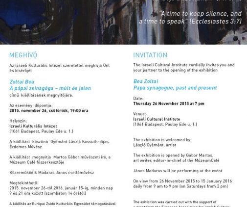 Mazsihisz hírek A pápai zsinagóga – múlt és jelen: kiállítás az Izraeli Kulturális Intézetben 2015. november 8. - 14:57