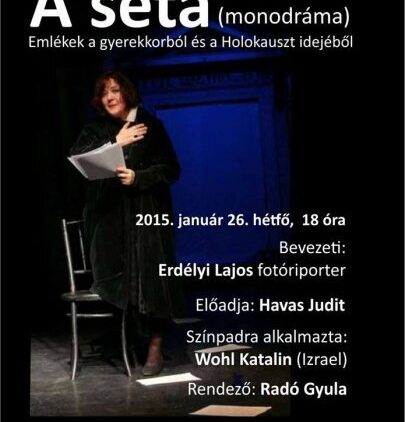 Mazsihisz hírek A séta – Emlékek a gyerekkorból és a Holokauszt idejéből, Havas Judit előadásában 2015. január 19. - 20:27