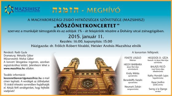 Mazsihisz hírek Köszönetkoncert sztárfellépőkkel, a Dohány utcai zsinagógában 2014. december 4. - 22:21