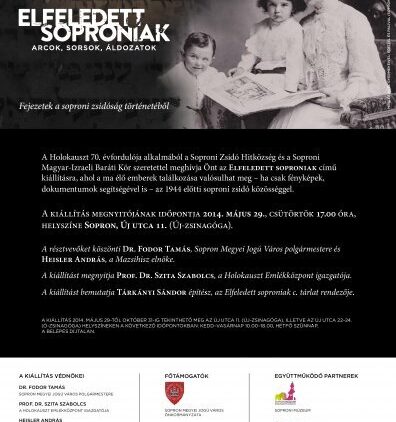 Mazsihisz hírek Elfeledett soproniak – arcok, sorsok, áldozatok – emlékkiállítás nyílik az Ó és Új-zsinagógában 2014. május 27. - 12:29