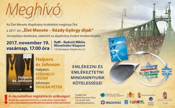 Mazsihisz hírek Meghívó az Élet Menete Alapítvány Kézdy György-díjak átadására 2017. november 14. - 19:49
