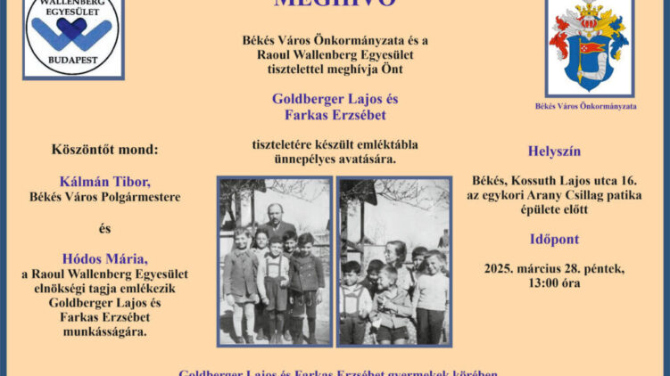 Megemlékezések Emléktáblát avatnak Békésen Goldberger Lajos és Farkas Erzsébet tiszteletére 2025. március 10. - 16:09