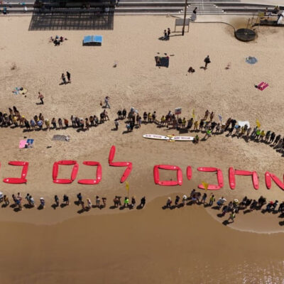Tengerparti élőlánc a túszok elengedéséért Izraelben