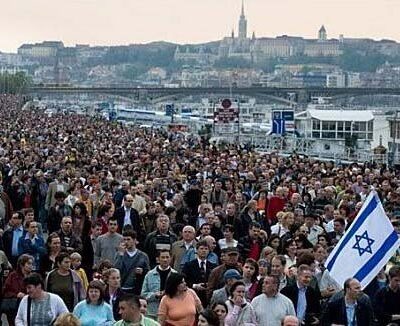 A holokauszt magyarországi áldozataira szabadtéri koncerttel emlékeztek a Terror Háza Múzeumnál vasárnap délután. Kora este a Szent István parktól a sófár megfújása után több tízezer ember, köztük vezető politikusok és közéleti személyiségek részvételével indult el a fáklyás felvonulás, az Élet Menete.