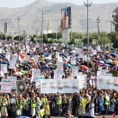 megjelent egy zászlóikon „Allahu Akbar” („Allah a legnagyobb”) felirattal.