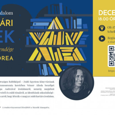 Az OR-ZSE Könyvtárának irodalmi sorozatában Veiszer Alinda a nemrég megjelent könyveikről és zsidó témáikról, az identitások sokszínűségéről kérdezi az írókat, valamint arról, hogy létezik-e magyar zsidó kortárs irodalom. Eddig Zoltán Gábor, Szántó T. Gábor és Kácsor Zsolt volt a sorozat vendége, deceber 10-én, kedden este 6-tól pedig Tompa Andreát hallhatják.