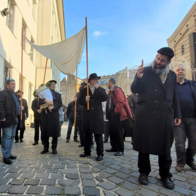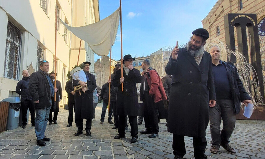 Igazi zsidó örömünnep helyszíne volt ma délután a Dohány utcai zsinagóga és környéke, hiszen új Tóratekercset helyeztek el a templom frigyszekrényében. Az ünnepi menet a Tórával és a hüpével az Emanuel-emlékfától indulva tett egy kört a környező utcákban, hogy végül eljusson a végső céljáig.