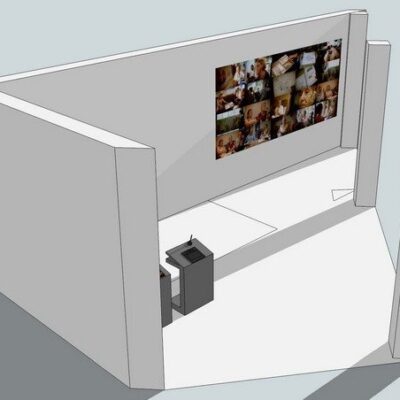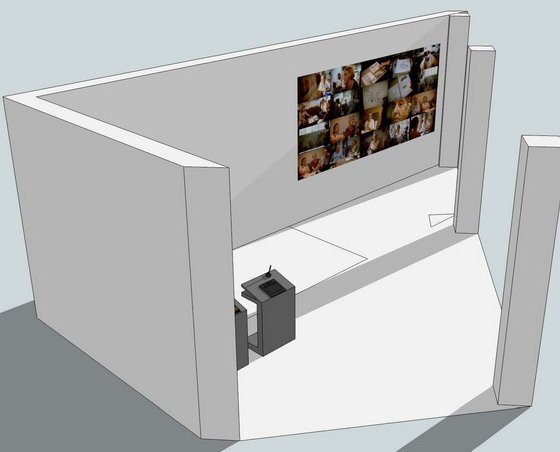 A látogató a fal előtt állva kinyújtott karral keresgél. A vetített felület két szélén szemmagasságban elhelyezett kamerák segítségével a rendszer érzékeli az érdeklődő kézmozdulatát, kinagyítja a kiválasztott videót és teljes méretben, hanggal együtt lejátssza.