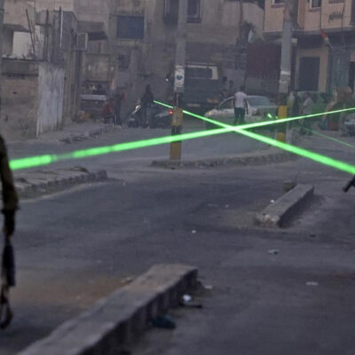 (Címlapkép: egy éjszakai tüntetés Eviatár miatt múlt hónapban. A palesztinok lézerfénnyel világítják meg a területet. Fotó: AFP)