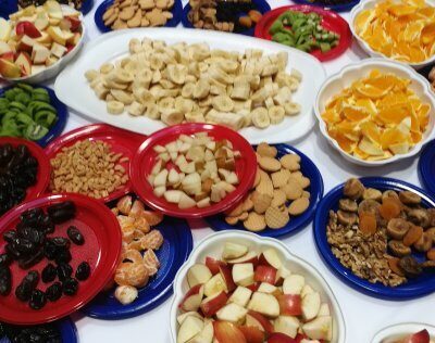 A szervezők azonban kitettek magukért, és a hét „alaphozzávalón” kívül csemegézhettünk almát, aszalt barackot, aszalt szilvát, banánt, diót, kivit, mogyorót, narancsot is.