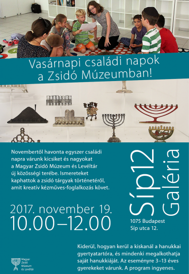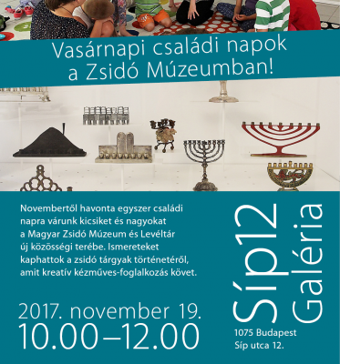 Novembertől havonta egy közös családi napra várjuk a kicsiket és nagyokat a MAZSIHISZ-Zsidó Múzeum és Levéltár új közösségi terébe, a Síp12 Galériába! (Pontos cím: Budapest VII. ker., Síp utca 12.)