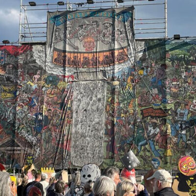 A Kasselben kiállított People’s Justice (Népek igazsága) című festményen – amelyet már eltávolítottak a tárlatról – egy disznófejű Moszad-ügynök masíroz Dávid-csillagos kendővel a nyakában, kissé arrébb egy vámpírfogú zsidó látható SS-jellel a kalapján. A világ egyik legfontosabb kortárs képzőművészeti kiállításán, a németországi Kasselben megrendezett documentán észlelt példátlan zsidóellenesség hatalmas hullámokat vert. Felelősséget mégsem vállal senki. A Szombat írását ajánljuk.