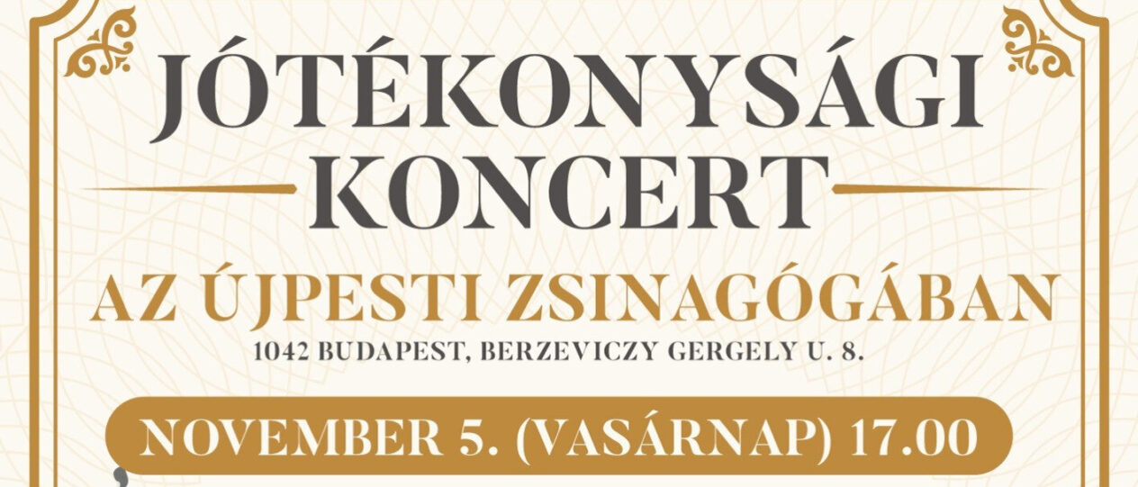Nagyszabású jótékonysági koncertet rendeznek az izraeli háborúban elesett áldozatok beazonosításának megsegítésére november 5-én, vasárnap délután 5 órakor. A koncert díszvendége a Sabbathsong Klezmer Band lesz. A koncert ingyenesen látogatható, helyfoglalás érkezési sorrendben. Pontos cím: Budapest, IV. kerület, Berzeviczy Gergely u. 8.