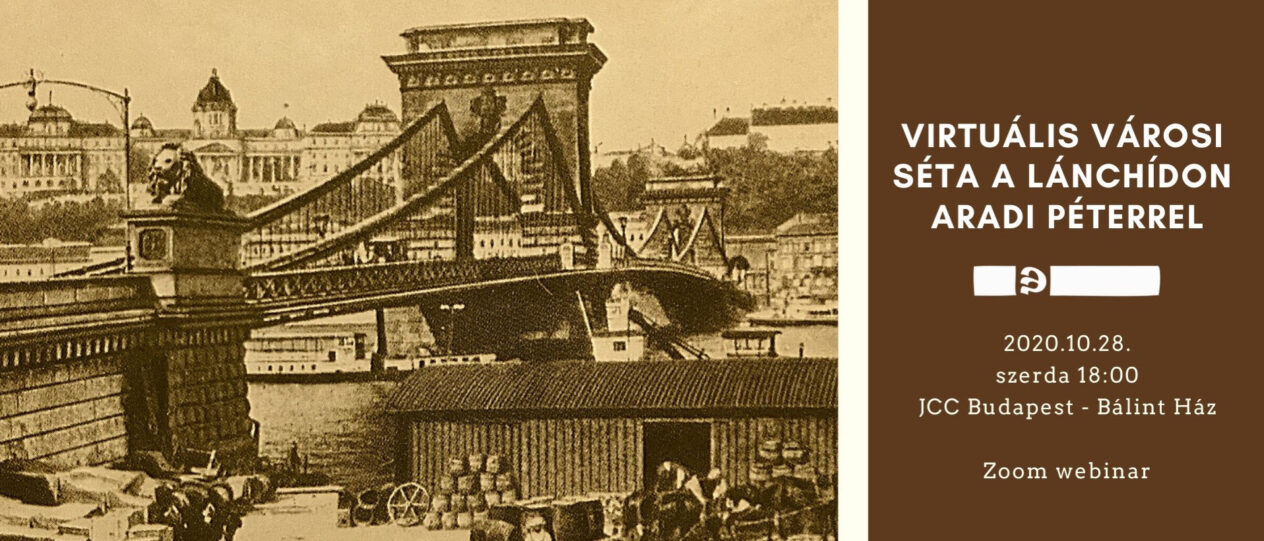 A JCC Budapest – Bálint Ház és Aradi Péter idegenvezető sok szeretettel invitál minden érdeklődőt a következő virtuális sétájára, 2020. október 28. szerda este 6 órára, hogy mindent megtudhassunk Budapest és Magyarország egyik világhírű szimbólumáról a Lánchídról.