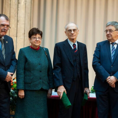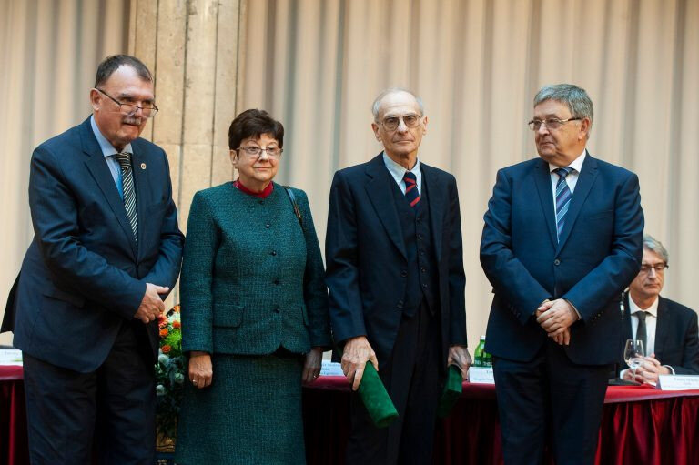 Címlapkép: Vértesi Péter (jobbról a második) a kiemelkedő tudományos életművének elismeréséért átveszi a Magyar Tudományos Akadémia Eötvös József-koszorúját