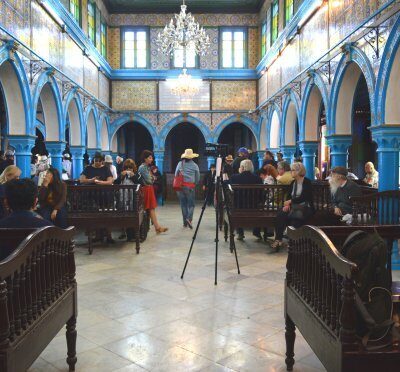 A sziget idegenforgalma szempontjából ugyanis a zarándoklat, azaz a dzserbai zsidók nagy összejövetele a legnagyobb attrakció minden esztendőben. Az eseményt nevezzük zarándoklatnak, holott – bár keresztény fogalom – a lényegét jobban kifejezné a „búcsú” szó. A zarándoklat természetesen a zsidó naptárhoz kötődik: minden év ijár hó 18-án, lág báómerkor tartják. A helyszín kívülről nem sokat mutat: átlagos 19. századi épület. A központi bejárattól jobbra van a közösségi ház, amely úgy néz ki, mint a sziget számos régi fogadójának (arab szóval funduk) egyike. Balra van a zsinagóga, amelynek hosszúkás, belső tere jellemzően a kék különböző keleti árnyalataiban pompázik, de stílusában már érződik rajta az európai hatás. A „buli” mindkét térben egyszerre folyik: a fogadóban a színpadon az a fajta közel-keleti könnyűzene hallható végtelenítve, amit az izraeli szefárd bulikból ismerünk. Körben különböző árusok standjai sorakoznak, ahol a tradicionális fűszerektől a kegytárgyakon és bio-olívaolajon át egészen a nettó turistakütyükig minden kapható. Gondoltak a zarándokok étkeztetésére is: hihetetlen olcsón lehet kapni a helyi zsidó konyha remekeiből.