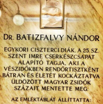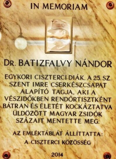 A témára fogékony közönség előtt is teljesen ismeretlen rendőrtiszt, volt ciszterci diák, a 25-ös cserkészcsapat alapító tagja, Batizfalvy Nándor több száz ember életét mentette meg a nyilasok által uralt Budapesten. A kapitány szerdán délután kapott emléktáblát egykori alma materében.