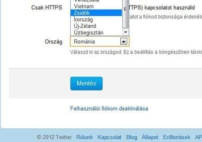 A Twitter beállításai között szerepel egy országválasztó is: itt megadhatjuk, éppen hol tartózkodunk, és ennek függvényében az oldal megmutat vagy elrejt bizonyos tartalmakat. Az itt választható országok nevei között Izrael helyett ennyit láthatunk: Zsidók.